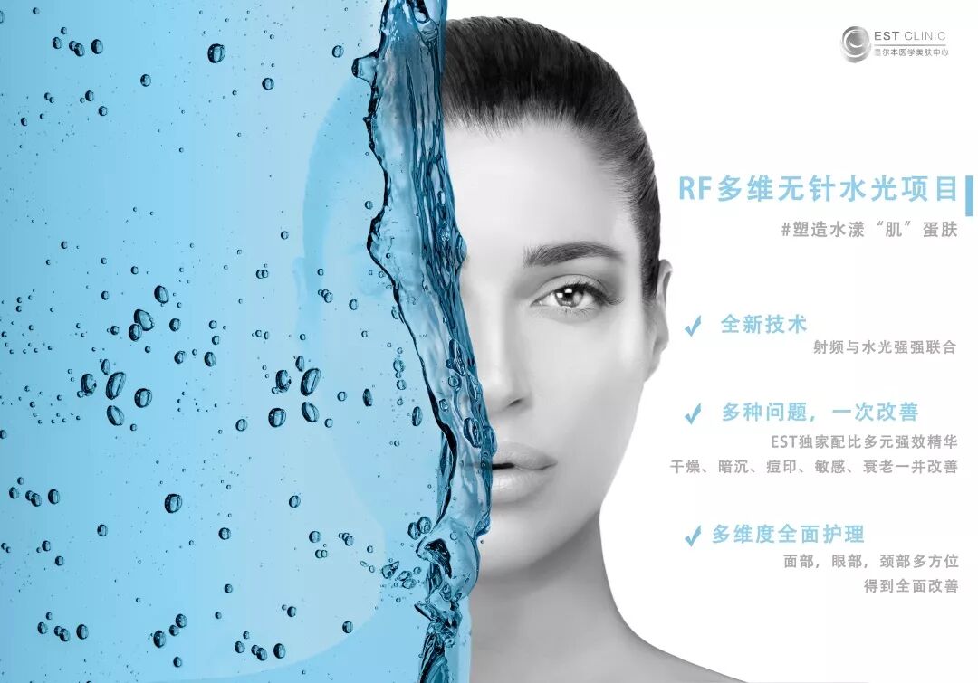 由于护肤的有效成分一定要达到基底层才有效果,所以想要真正的补水,可以利用物理的方式,例如运用微晶片结合射频,强行打开屏障的通道,让肌肤完整的吸收水分和复合强效成分,我们称这种方式为RF多维无针水光。