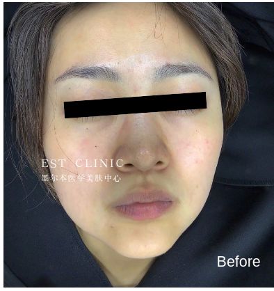 这位客人在来EST Clinic做咨询时,向我们表达了她对自己的肤色不满意的诉求,额头和嘴周皮肤暗沉,皮肤干燥缺水。